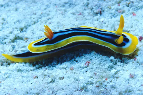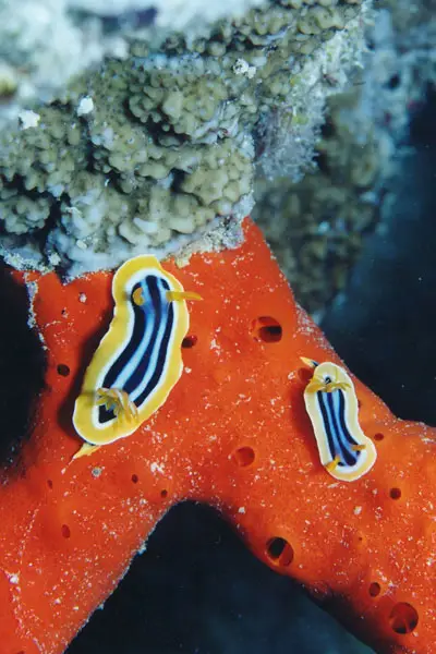 Von den über tausend Fischarten im Roten Meer, tummeln sich knapp 800 im Golf von Aqaba. Dieser beginnt an der Straße von Tiran. Er erstreckt sich gemächlich über 177 km, misst zwischen 19 und 27 Kilometern in der Breite und ist bis zu 1835 m tief. Hier begegnen einem bunte Fische in allen Größen, von der Gelbmaulmuräne über den majestätischen Napoleon bis hin zum Barrakuda, dem Clownfisch und dem skurrilen Anglerfisch. Auch giftige Zeitgenossen wie der Feuerfisch, der Steinfisch und der gut getarnte Skorpionfisch sind hier zuhause. Für Liebhaber von Makrolebewesen gibt es ein Fest der Farben mit den vielen bunten Nacktschnecken, darunter die elegante Spanische Tänzerin oder die Pyjama-Nacktschnecke.